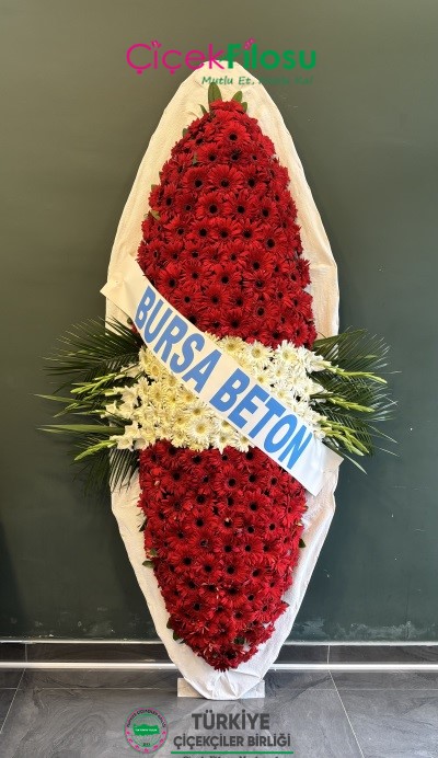 Ankara Yenimahalle’deki bir düğün töreni için Türkiye’nin en kaliteli çiçek satış sitesi cicekfilosu.com üzerinden gönderilen bu düğün çelenk çiçek siparişini son derece kaliteli ve canlı, taze gerberalardan ve egzotik yeşilliklerden sanatsal şekilde hazırlayarak iki saatte teslim eden Ankara Yenimahalle Çiçekçisine ve Yenimahalle çiçek mağazası çalışanlarına Türkiye’nin bir numaralı çiçekçilerini çatısı altında toplayan platform Türkiye Çiçekçiler Birliği olarak içten teşekkür ederiz.